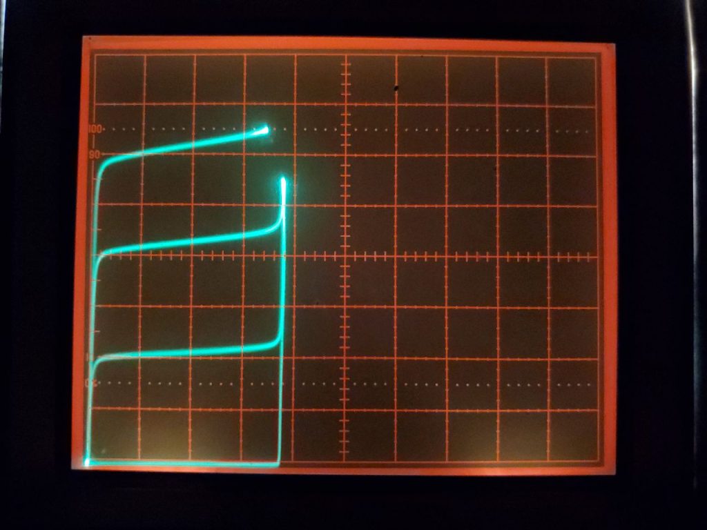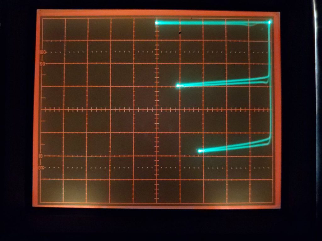 Comparison test between HS-402 and Tektronix-465 oscilloscopes with PNP and NPN transistors.